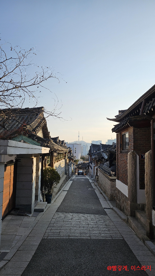 북촌길을 지나는 루트로 접어들었는데, 한복을 곱게 입은 외국 아가씨들이 셀카를 찍고 있었고