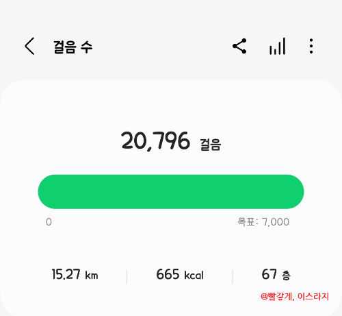 폰에 있는 기록을 확인해 봤더니 2만 보 넘게 걸었어요 축하해요 하는 배지가 있었다. 아하핫!
