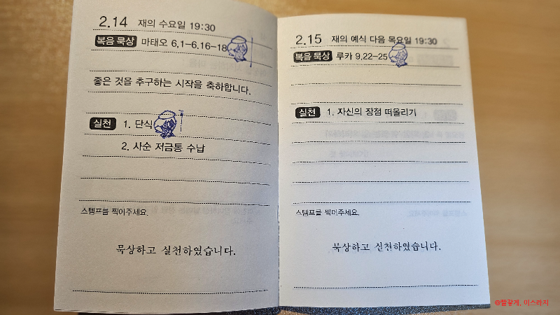 미사 직전 앉아서 몇 장 넘겨보니 가볍게 볼 수첩이 아닌 것 같아 하나 가지고 왔다.