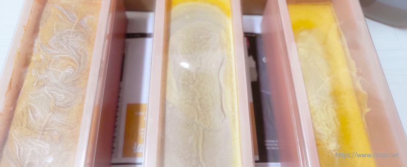 우여곡절 끝에 만든 비누는 고무다라이에서 꺼내는 것도 또 일이어서