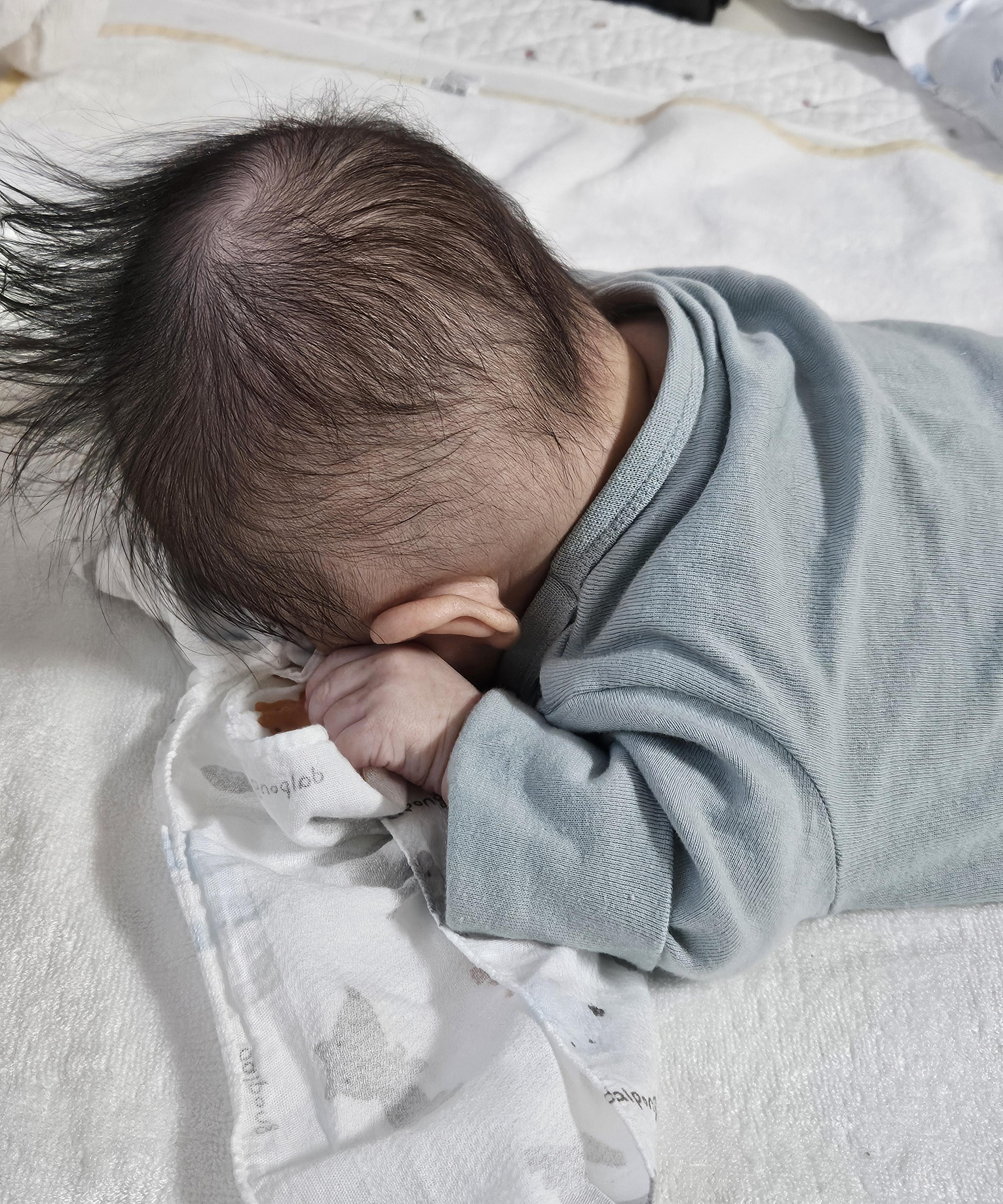 베냇머리가 빠지는 중이라 머리카락이 엉망이다. ㅎㅎ