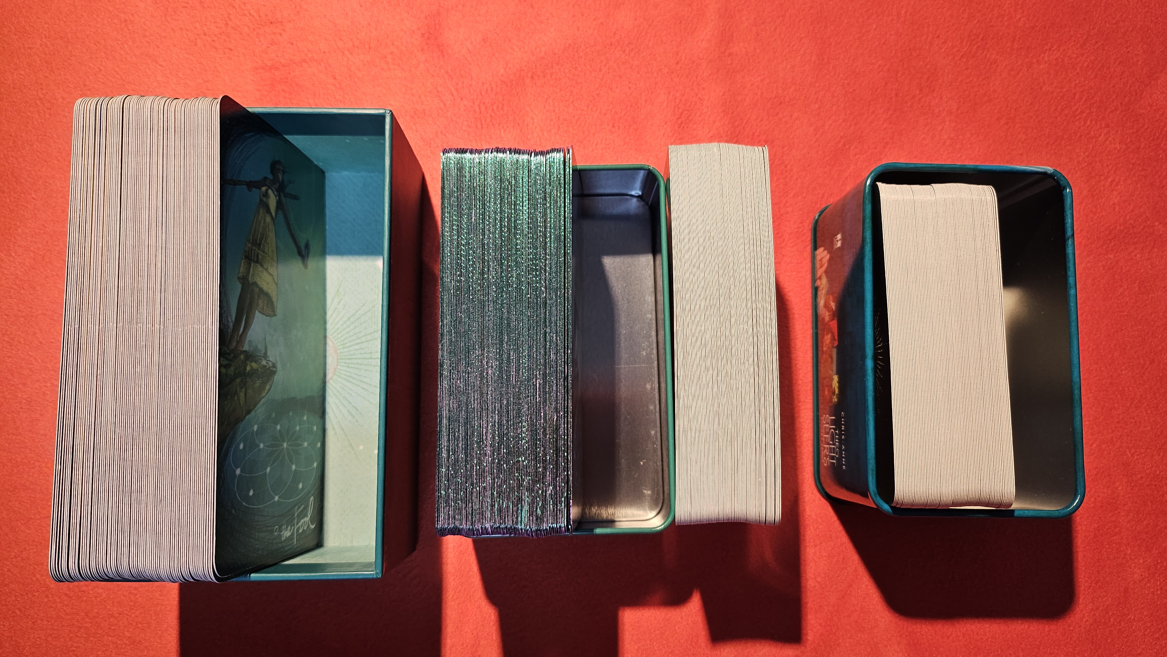 틴 케이스에 있는 것은 일러스트의 컬러가 연한데다가 카드 옆면에 녹색금박이 코팅되어 있어서